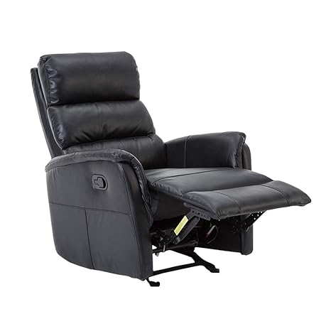 Bonzy Home Recliner Chair Rocker Leather Manual Lift Recliner Chair Home Theater Seating Bedroom Living Room Reclining Sofa Chair Black