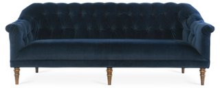 This timeless leather sofa features deeply pulled diamondback tufting generous cushions and tapered block legs.