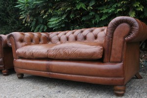 Brown chesterfield john lewis leather sofa in good condition needs restoring due to being exposed to the sun in a conservatory.