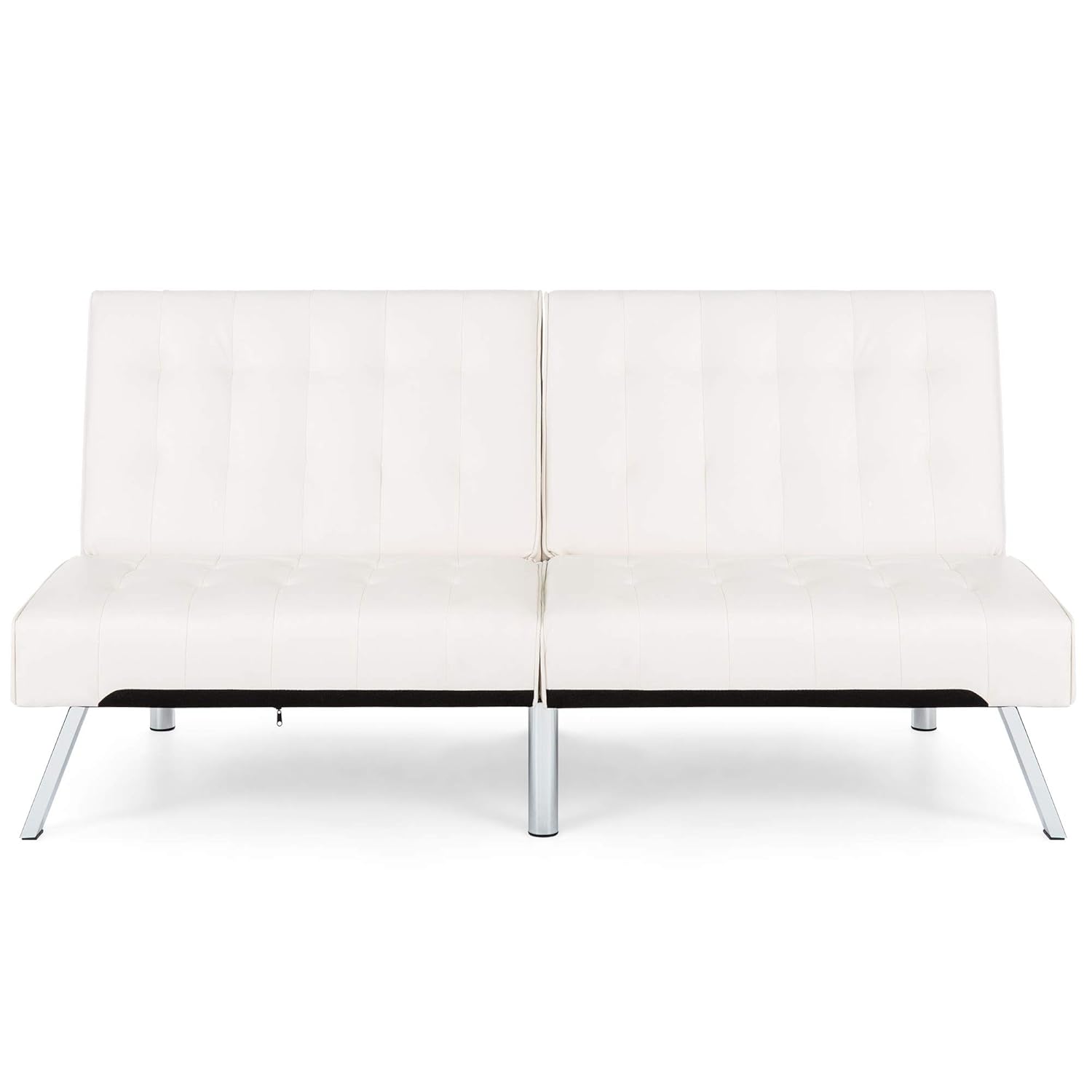Best Choice Products Modern Leather Futon Sofa Bed Couch Recliner Lounger Sleeper W Chrome Legs White