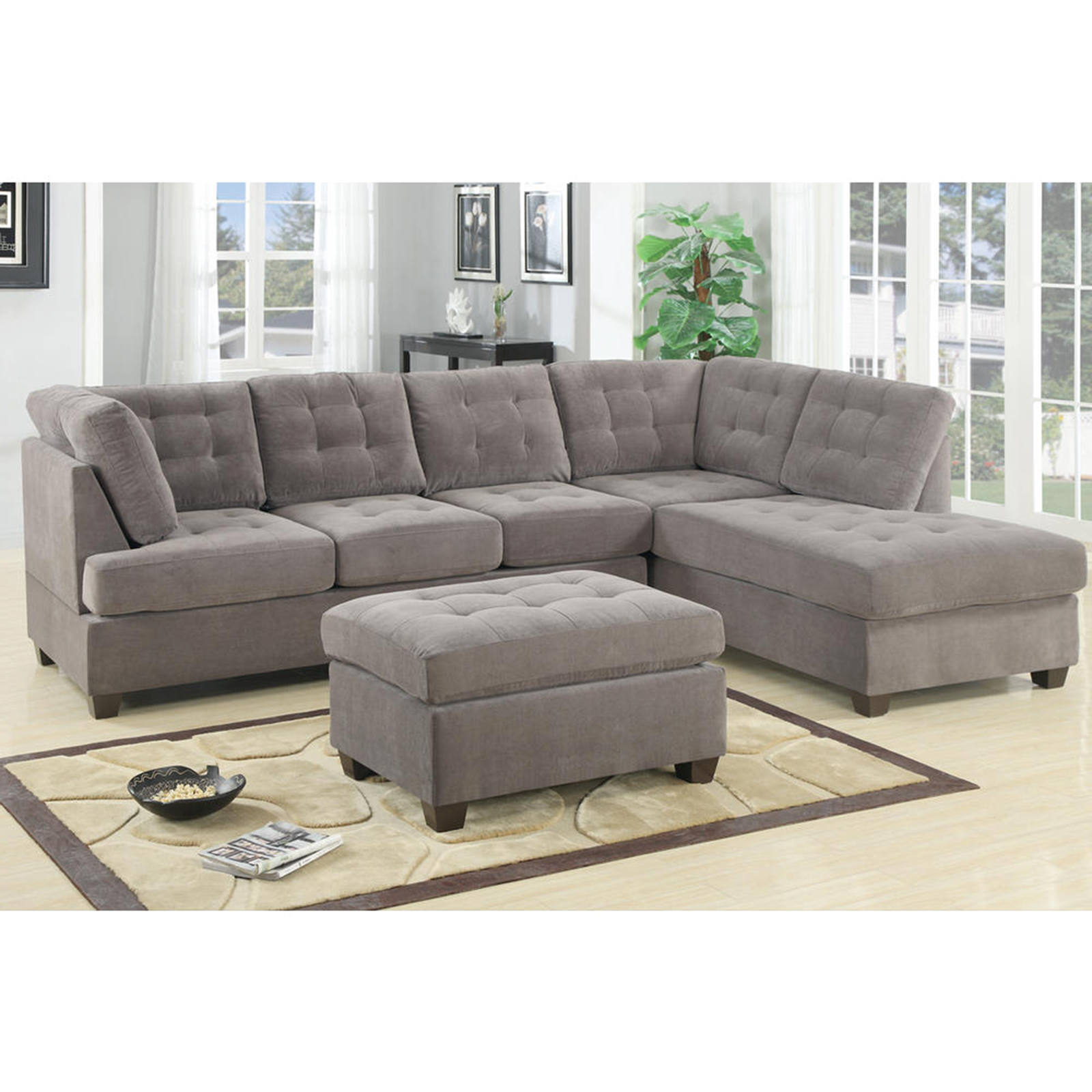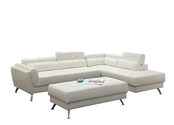 Poundex Bobkona Jolie Bonded Leather 3piece Sectional Set With Extra Large Ottoman In White
