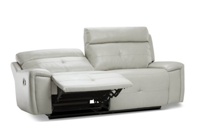 Light Grey Top Grain Leather Match Reclining Sofa Usb Port Living Room Furniture