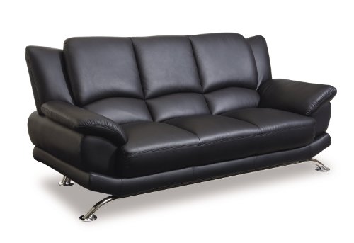 Global Furniture Rogers Collection Bonded Leather Matching Sofa Black With Chrome Legs