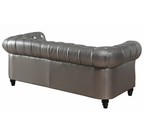 Zahara Tufted Silver Leather Chesterfield Sofa