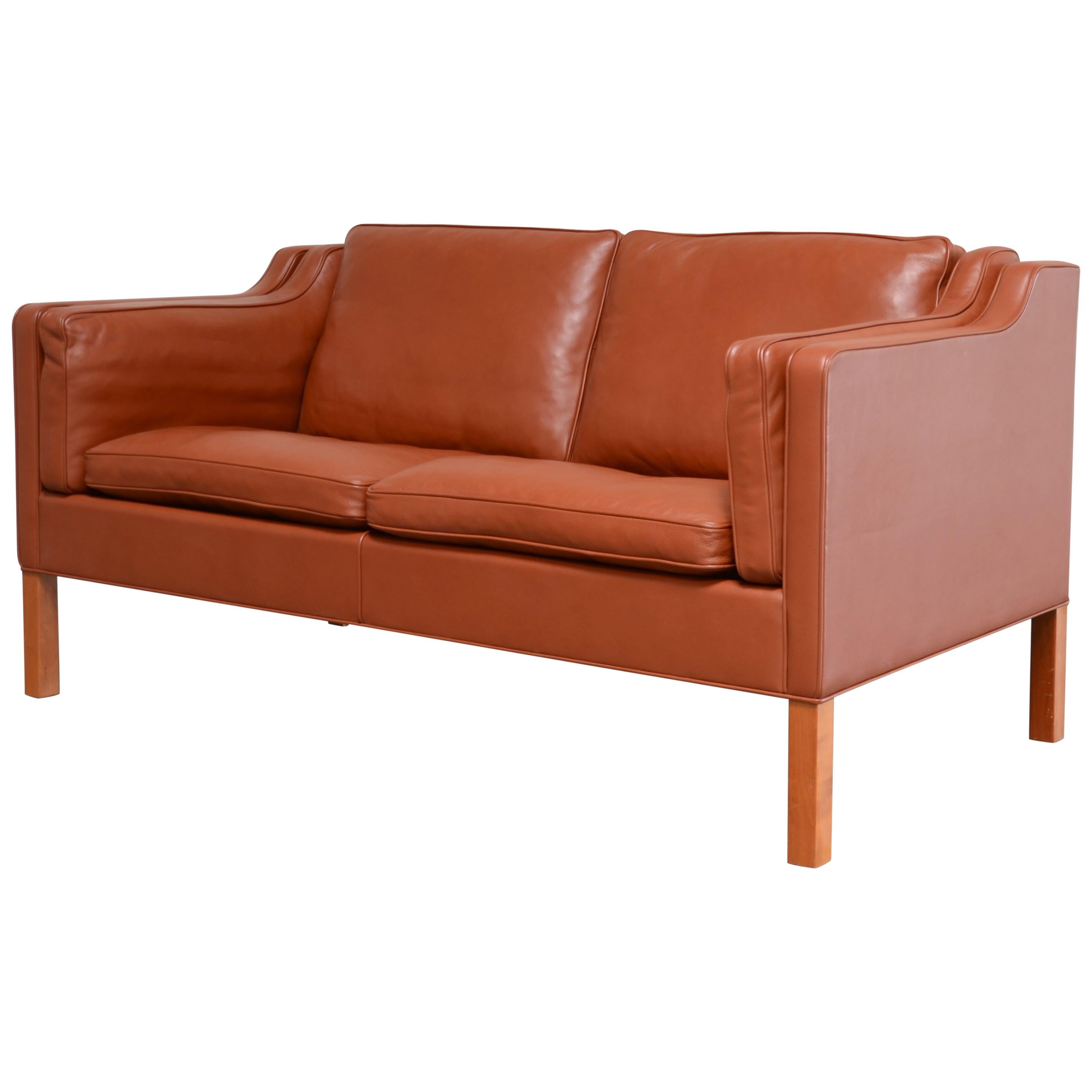 Borge Mogensen Leather Sofa Model 2212 Red Brandy Cognac For Fredericia