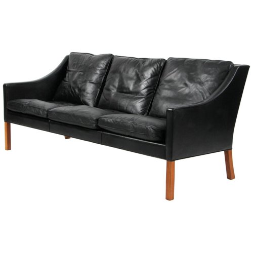 Black Leather 2209 3 Seater Sofa By Borge Mogensen For Fredericia 1960s