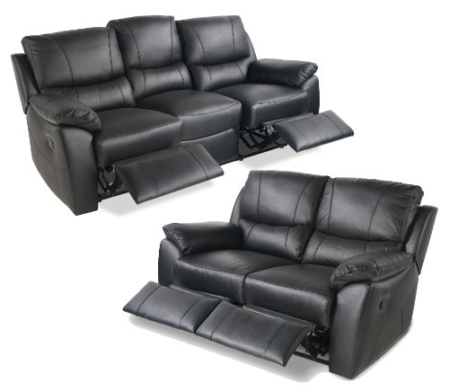 Leather Recliner Sofa Suite 3 2 Seater Black Free Delivery