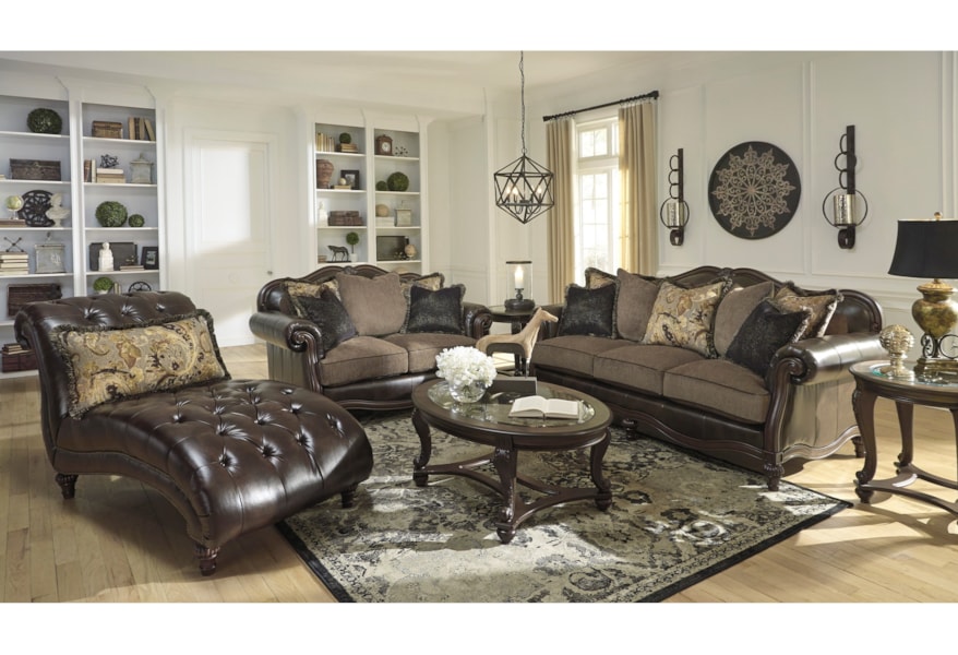 Brown Leather Durablend Antique 4pc Sofa Living Room Package By Ashley Furniture