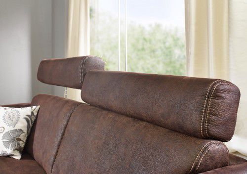 Laredo Chocolate Leather Sofa Hand Carved Teak Wood With