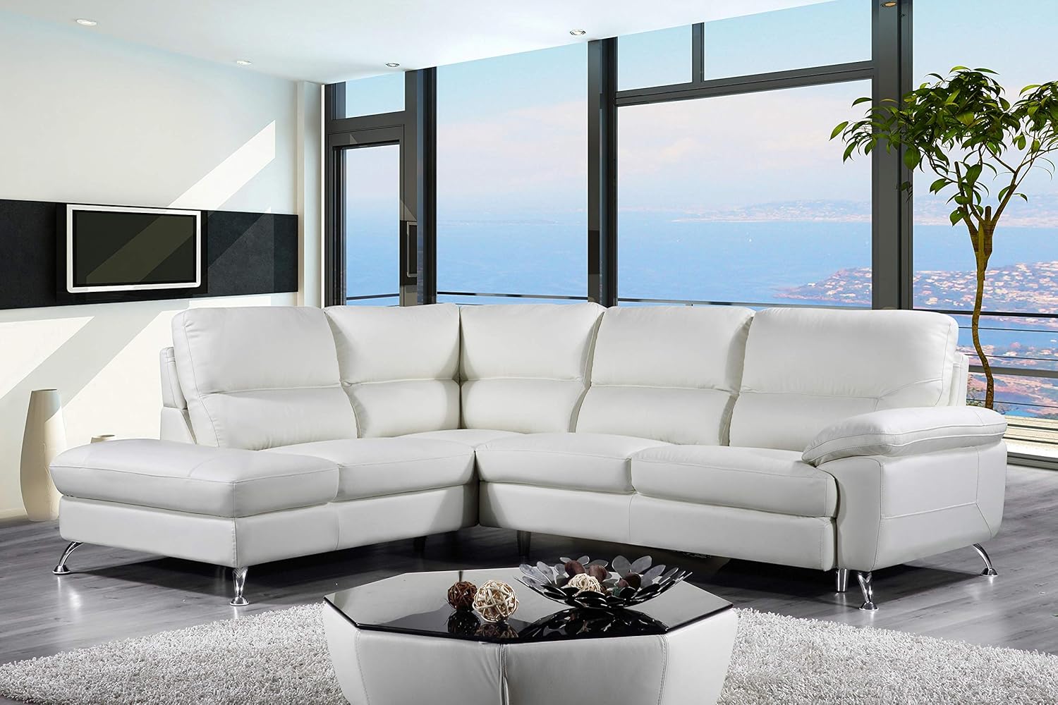 Massimo Modern White Leather Sectional Sofa