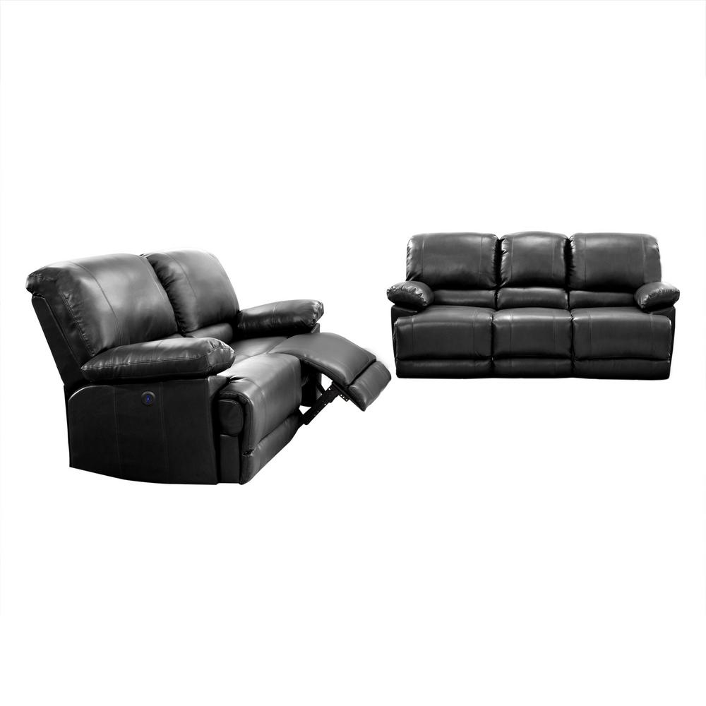 Corliving 2pc Plush Power Reclining Black Bonded Leather