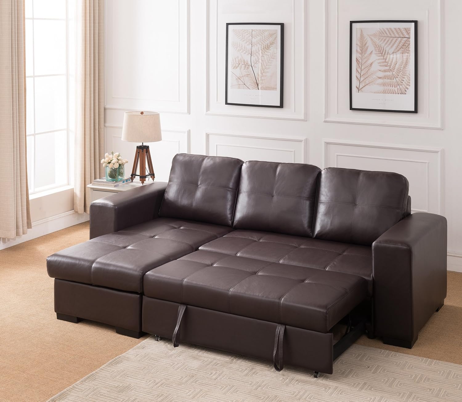Sc Furniture Ltd Dark Brown Leather Corner Sofa Pull Out Sofa Bed Brooklyn Lh Facing