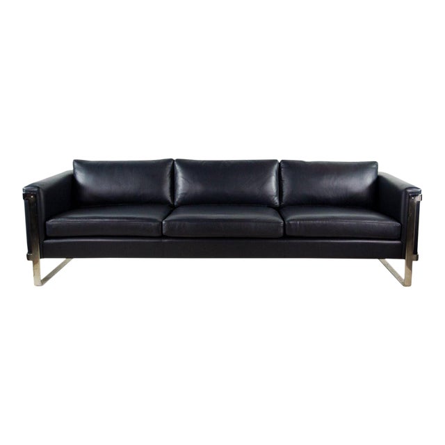 Milo Baughman For Thayer Coggin Mid Century Modern Denim Blue Leather Sofa