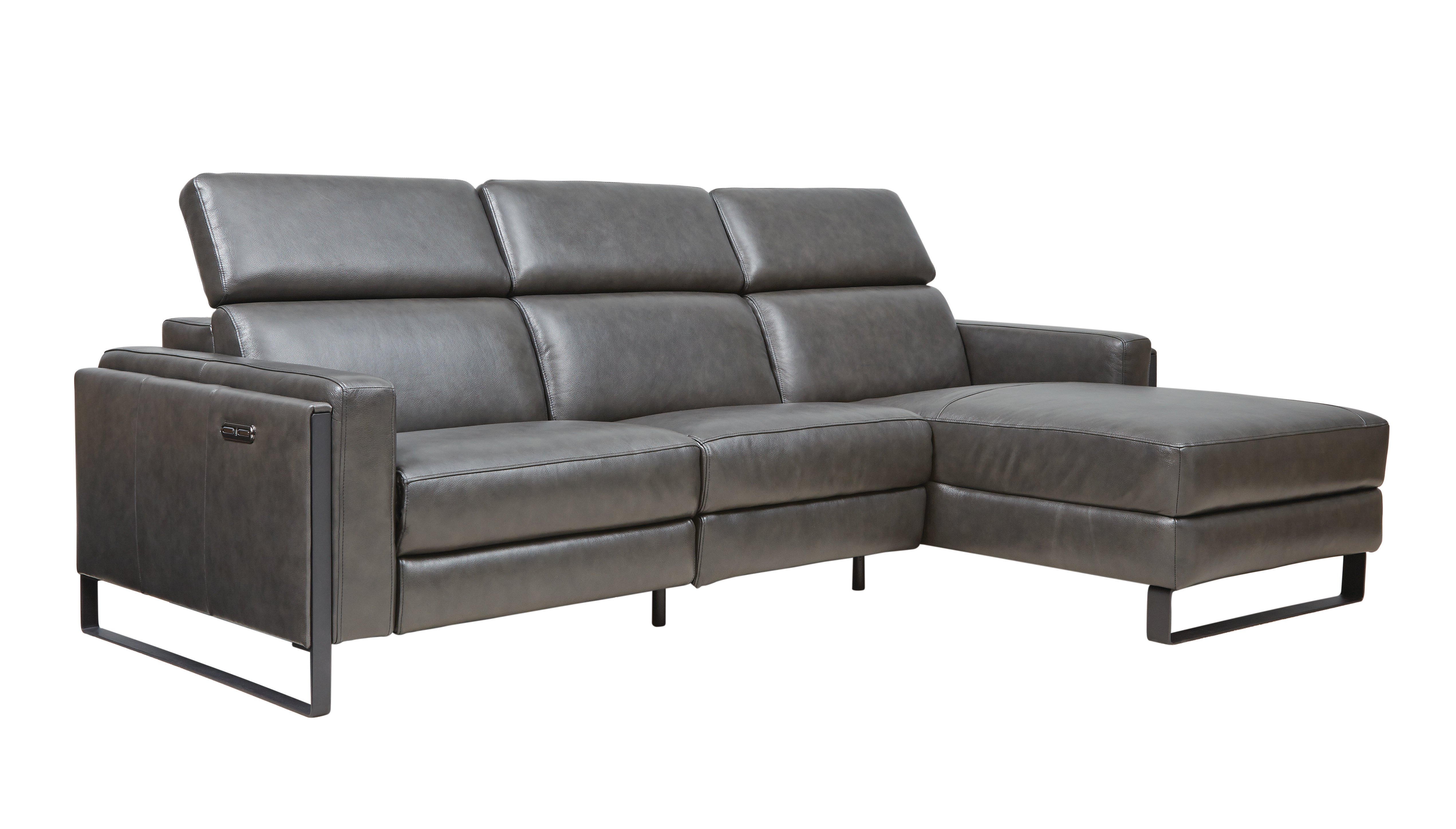 Dante Gray Leather Right Chaise Power Reclining Sectional