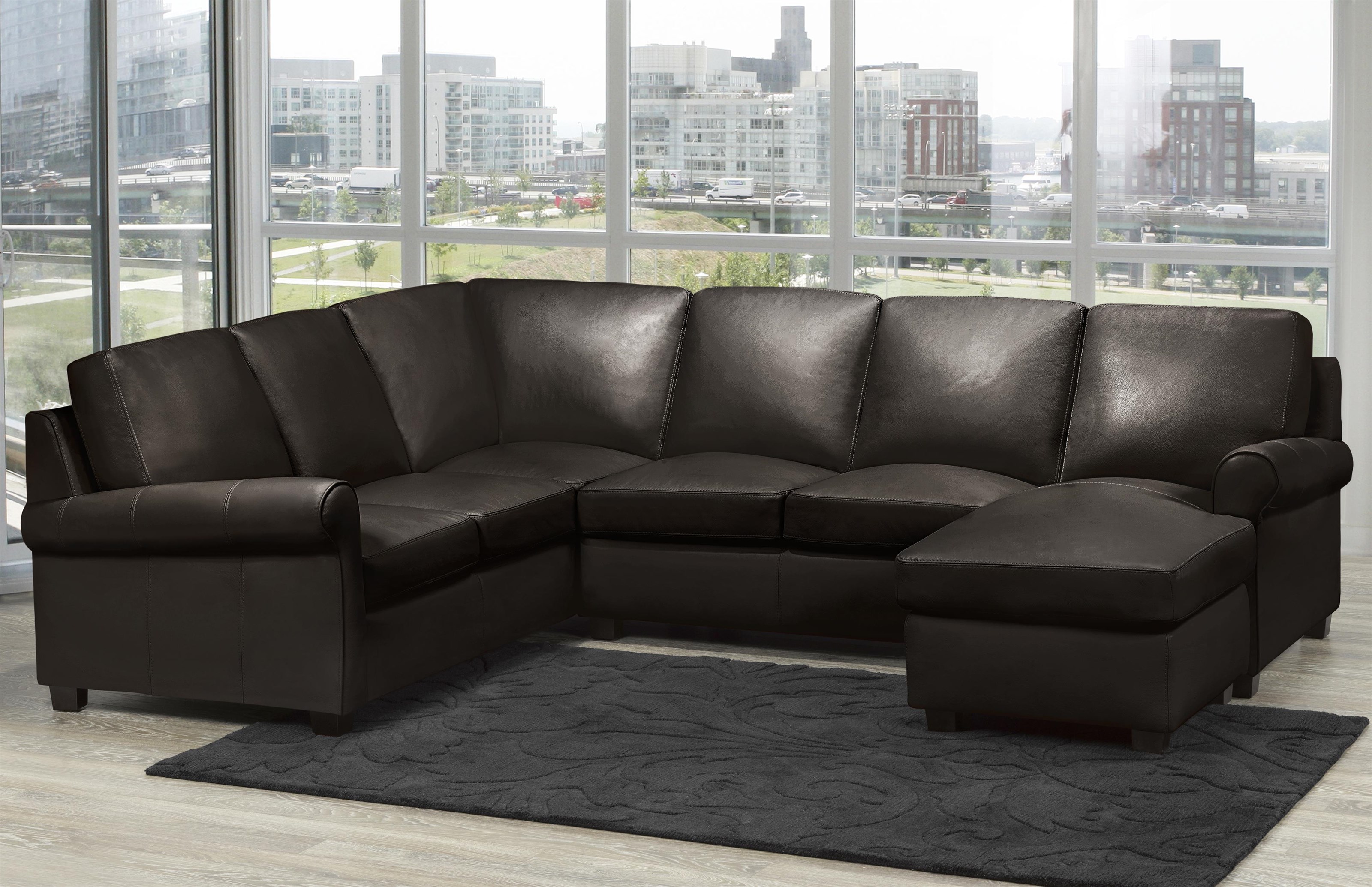 Furniture Contemporary Living Room With Mocha Leather Sofa