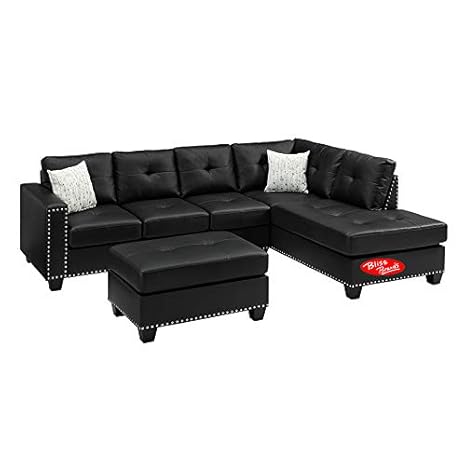 Amazon Com Sectional Sofa Set Faux Leather Nailhead Studded