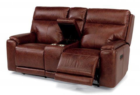 Flexsteel Leather Power Reclining Loveseat With Console And