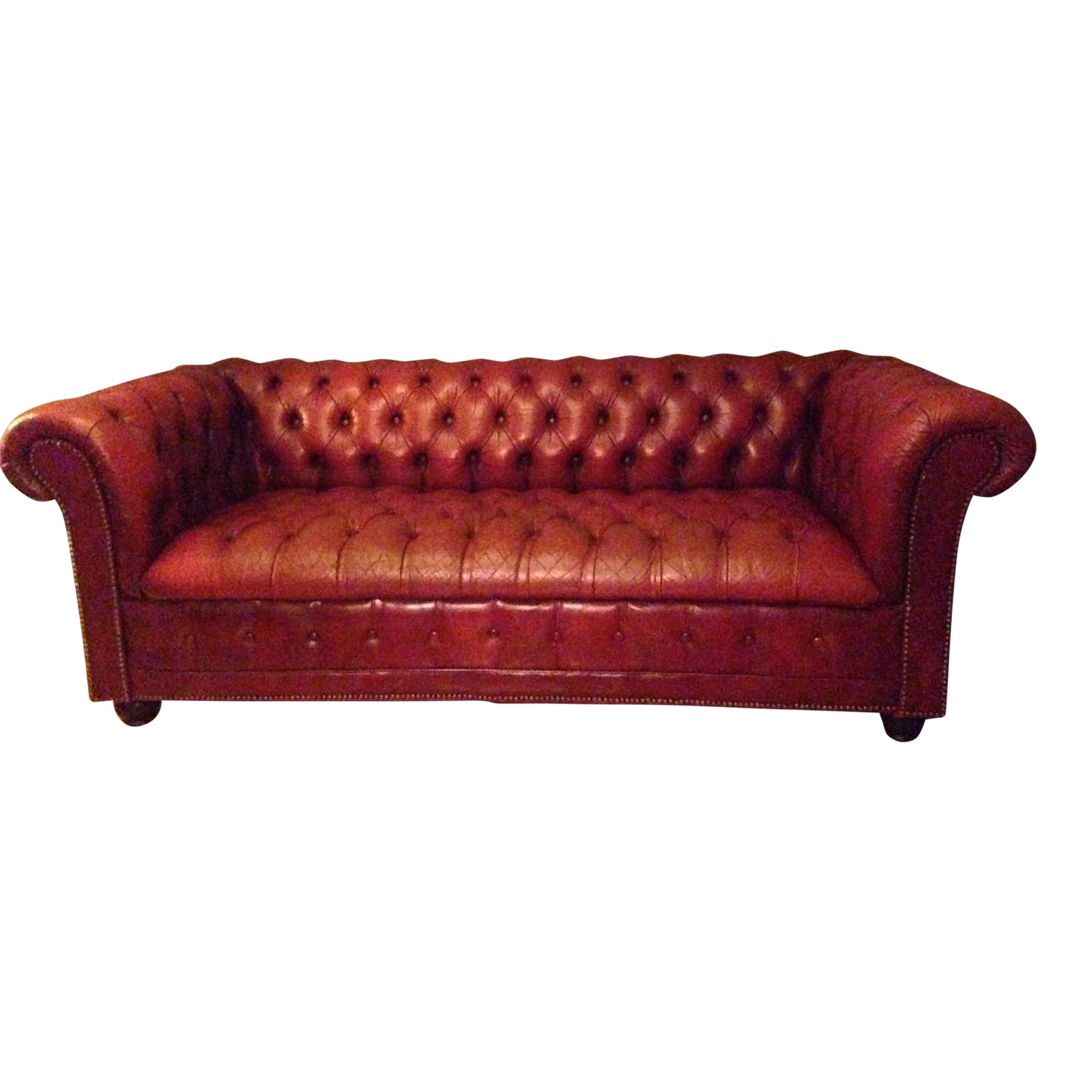 Classic Mid Century Ox Blood Red Tufted Leather Chesterfield Sofa