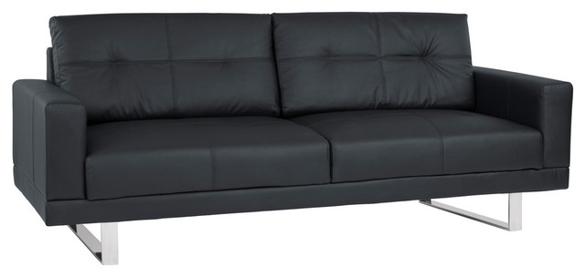 Armen Living Lincoln Mid Century Tufted Faux Leather Sofa With Chrome Legs