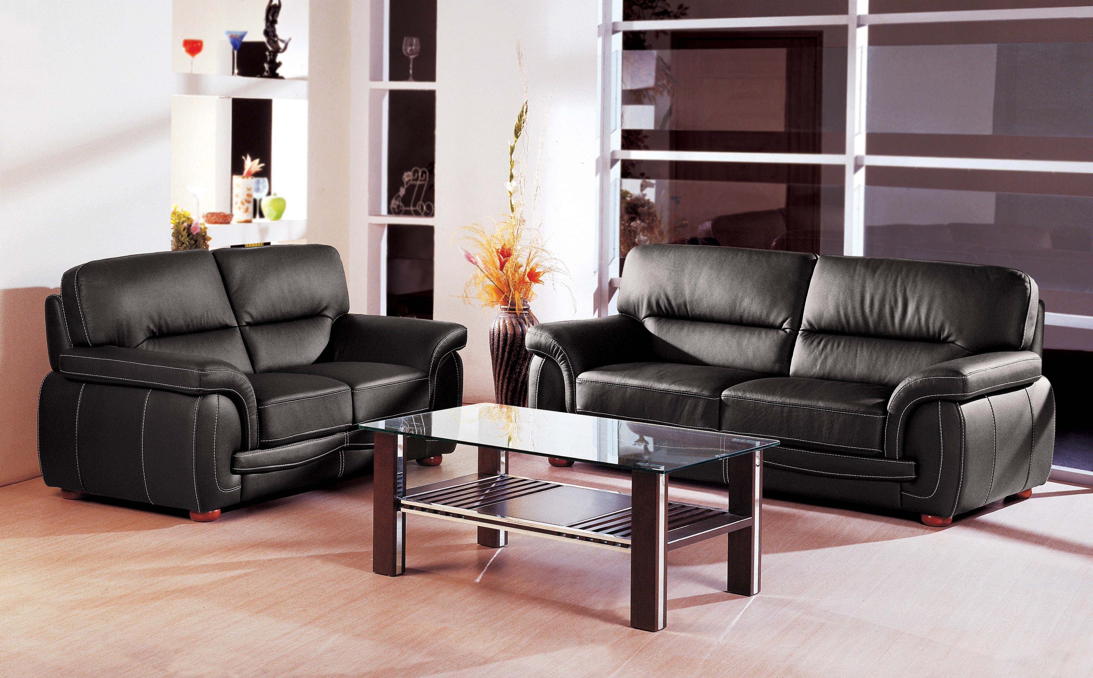 Black Italian Leather 3 Pcs Sofa Set Garne