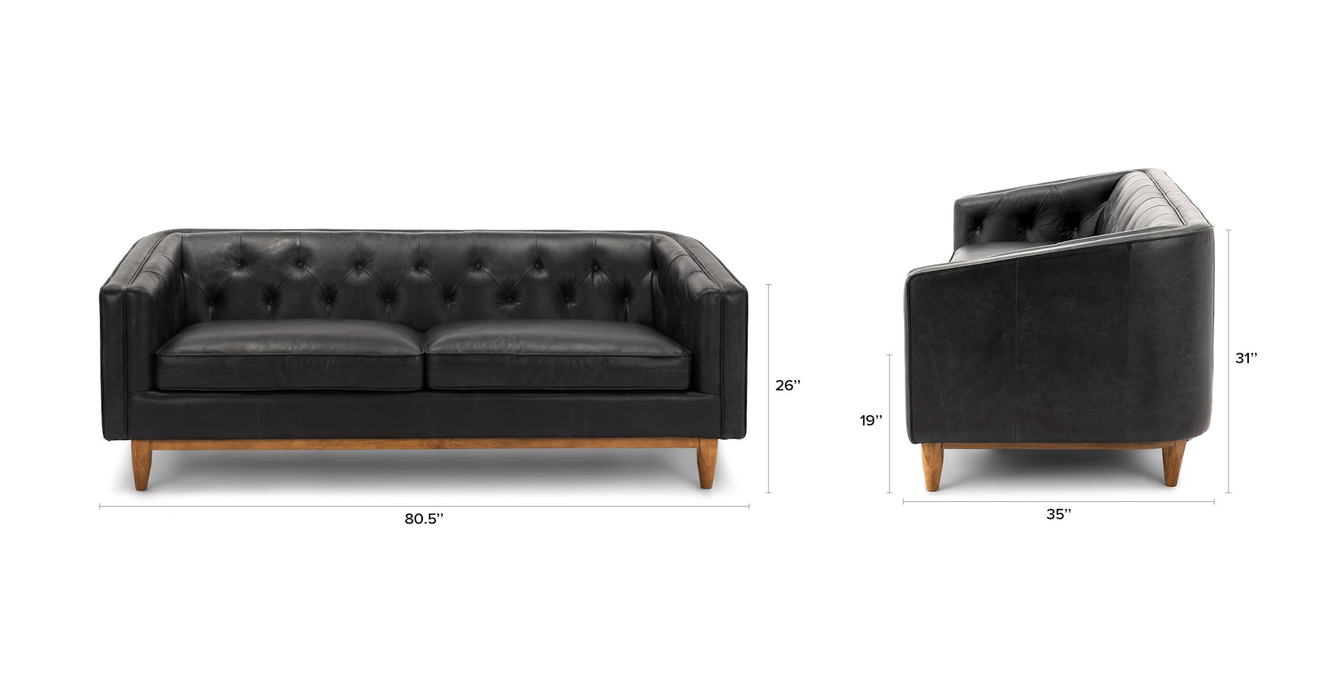 Dylan Mid Century Modern Blind Tufted Black Leather Sofa