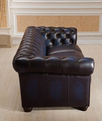Blue Leather Chesterfield Sofa Rentquestnyc