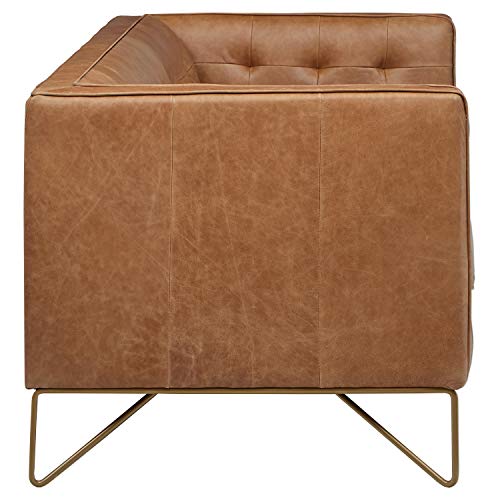 Rivet Brooke Contemporary Mid Century Modern Tufted Leather Sofa Couch 82 W Cognac