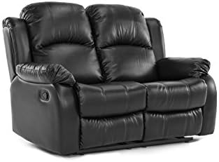 Classic Double Reclining Loveseat Bonded Leather Living Room Recliner Black