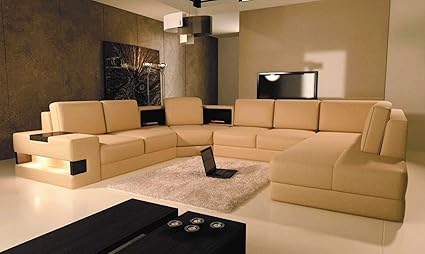 Amazon Com My Aashis Modern Beige Leather Sectional Sofa