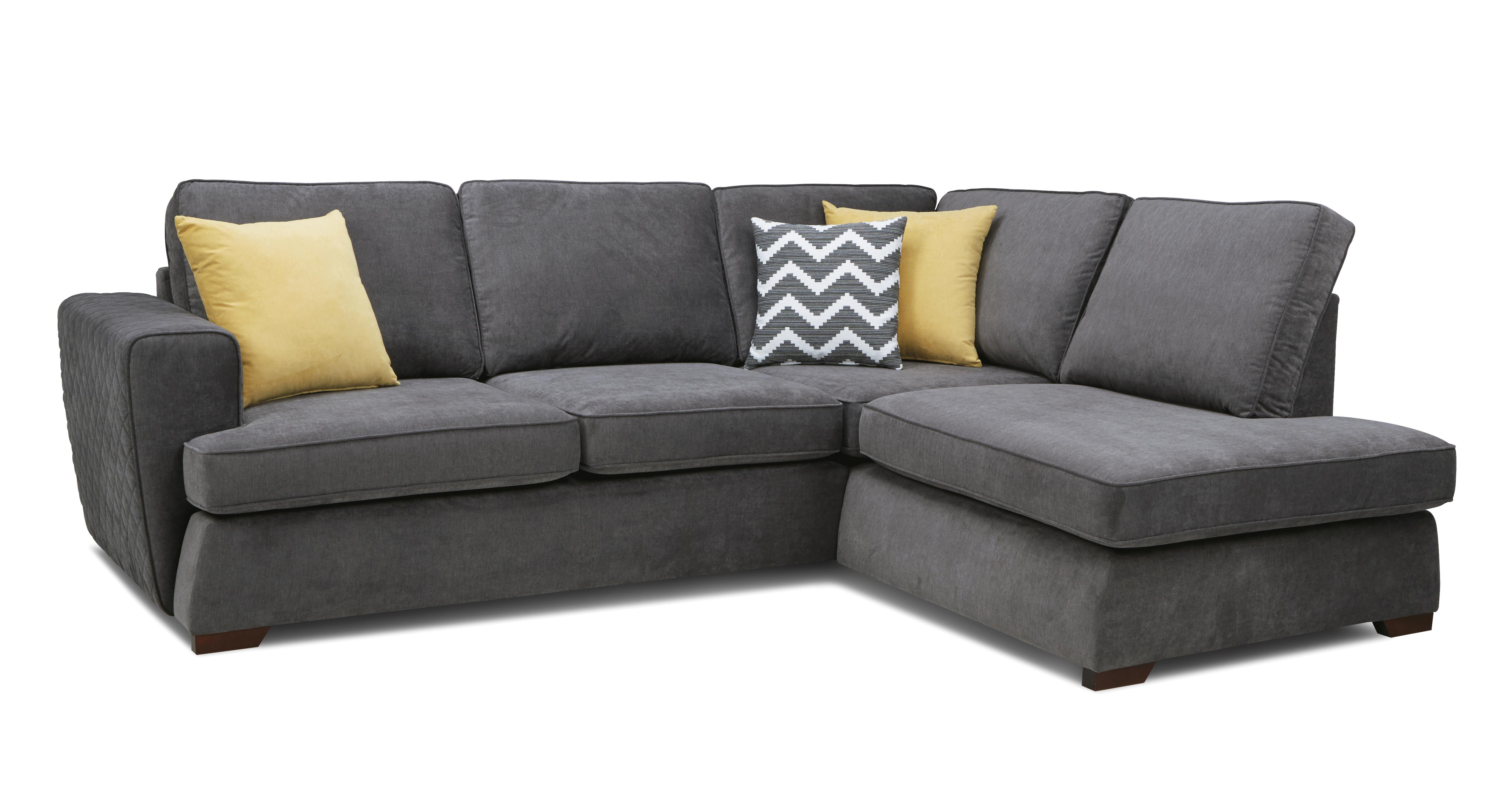 Shown here as a right arm facing corner sofa also available as left arm facing. Our collection offers designs made of plush leather tactile velvet and soft chenille in versatile grey and an array of other colours. When you want a place to get comfy and relax you cant get much better than this indulgent seating option.