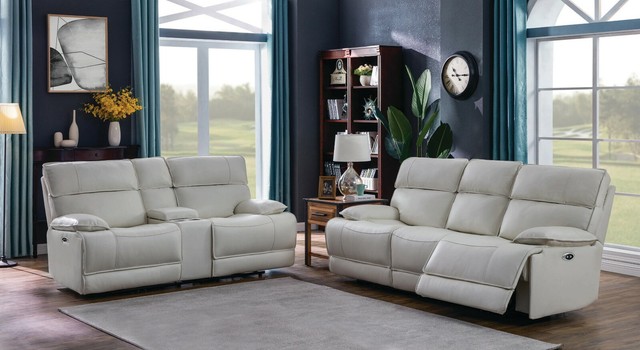 Top Grain White Leather Power Reclining Sofa Living Room Furniture