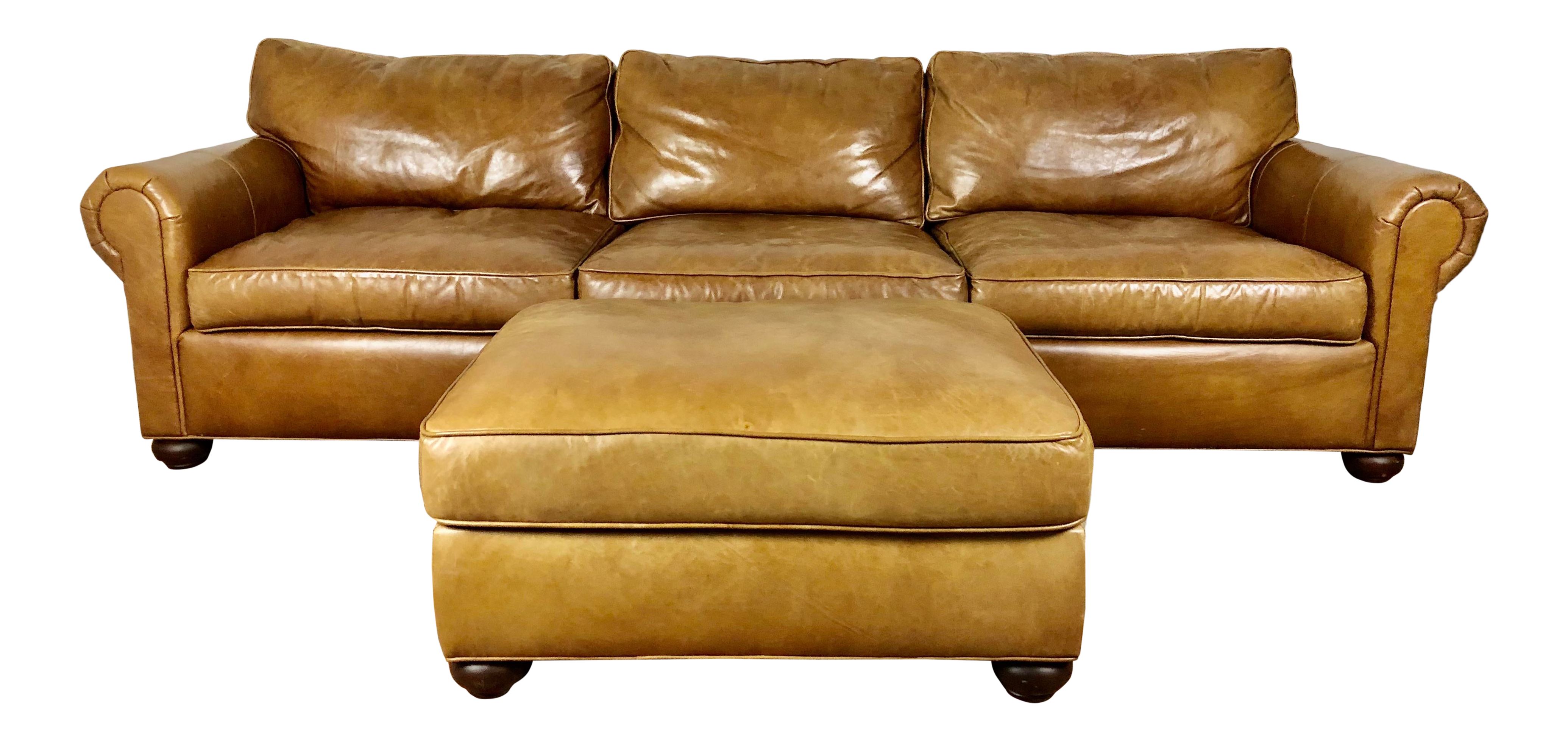 Restoration Hardware Lancaster Leather Sofa And Ottoman A Pair