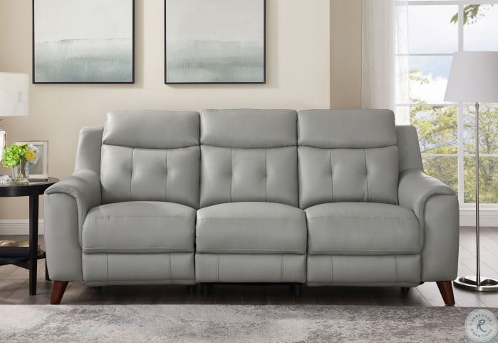 Torino Gray Leather Power Reclining Sofa With Power Headrest