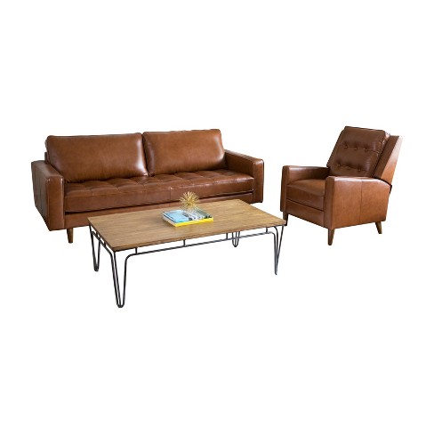 2pc Calvin Mid Century Top Grain Leather Sofa Recliner Set Camel Abbyson Living