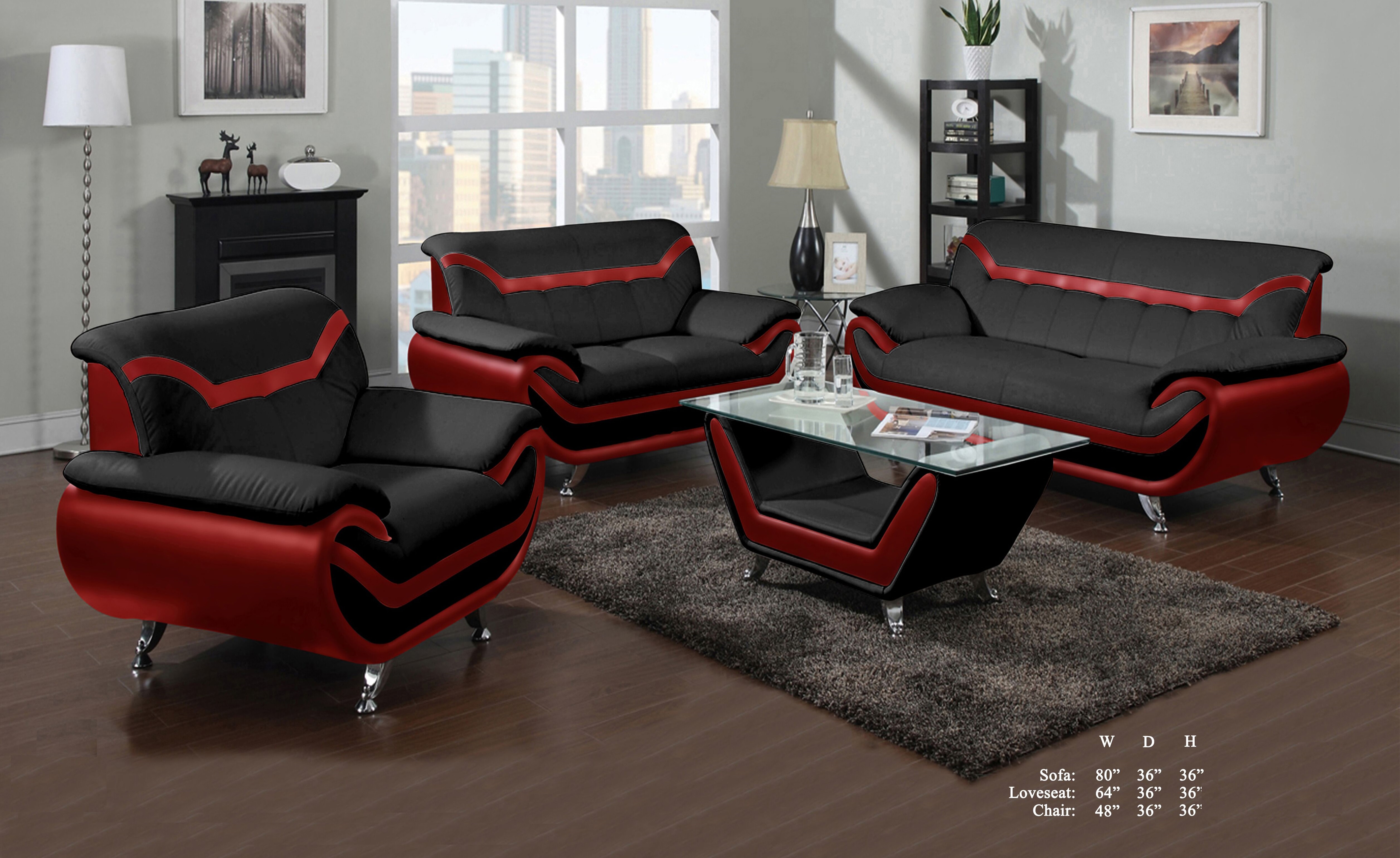 Star Home Living Red And Black Leather Three Piece Sofa Set