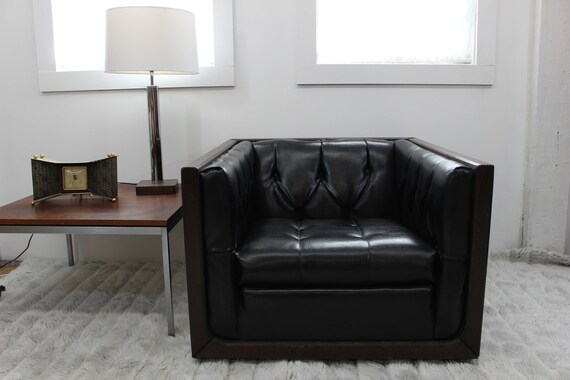 Mid Century Modern Danish Retro Vintage 1950 S Black Leather Upholstered Chair By Rowe