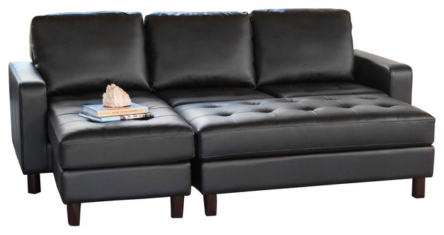 Modern Bonded Leather Sectional Sofa Small Space Configurable Couch Black
