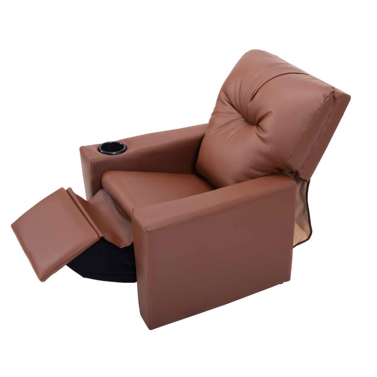Kids Recliner With Cup Holder Brown Leather Sofa Chair Recliners Chairs For Children