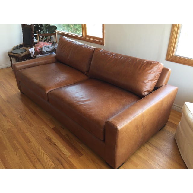 Contemporary Restoration Hardware Maxwell Leather Sofa